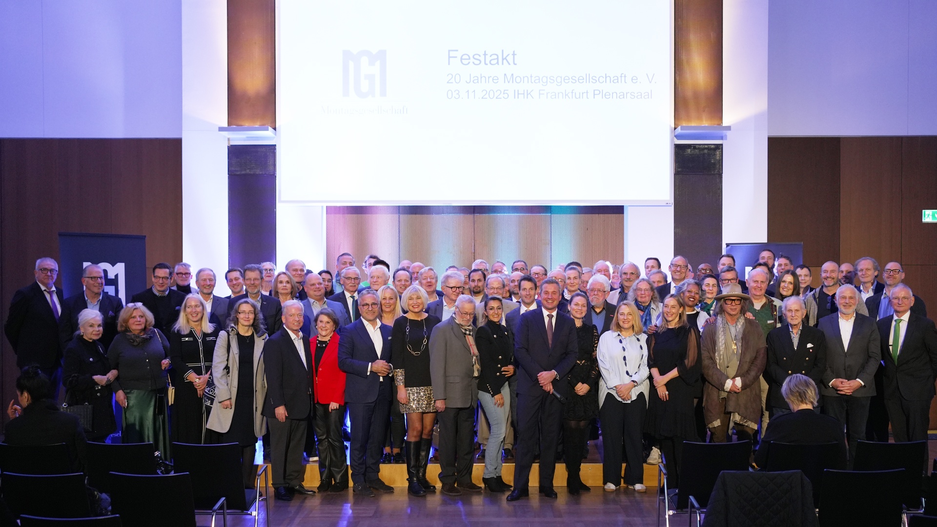 Am Montagabend feierte die Montagsgesellschaft e. V. ihr 20-jähriges Bestehen mit einer festlichen Jubiläumsveranstaltung in der IHK Frankfurt am Main. Rund 300 Gäste aus Politik, Wirtschaft, Kultur und Zivilgesellschaft kamen zusammen, um gemeinsam auf zwei Jahrzehnte bürgerschaftliches Engagement, kritischen Diskurs und gesellschaftlichen Dialog zurückzublicken.